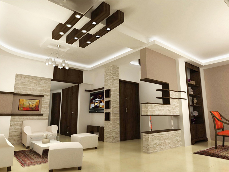 ۲ . اجرای کناف سقف پذیرایی و اتاق ها و کناف دکوری دیوار آخرین اتاق .